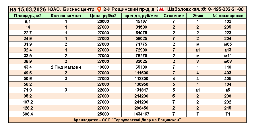 Предлагаются в аренду офисные блоки в конце ул. Шаболовка.