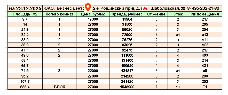 Аренда офисных помещений напрямую от сетевых операторов собственников, с общей площадью 45 000 м2. Две площадки коммерческой недвижимости с арендой без комиссионных выплат и без залога (депозита).